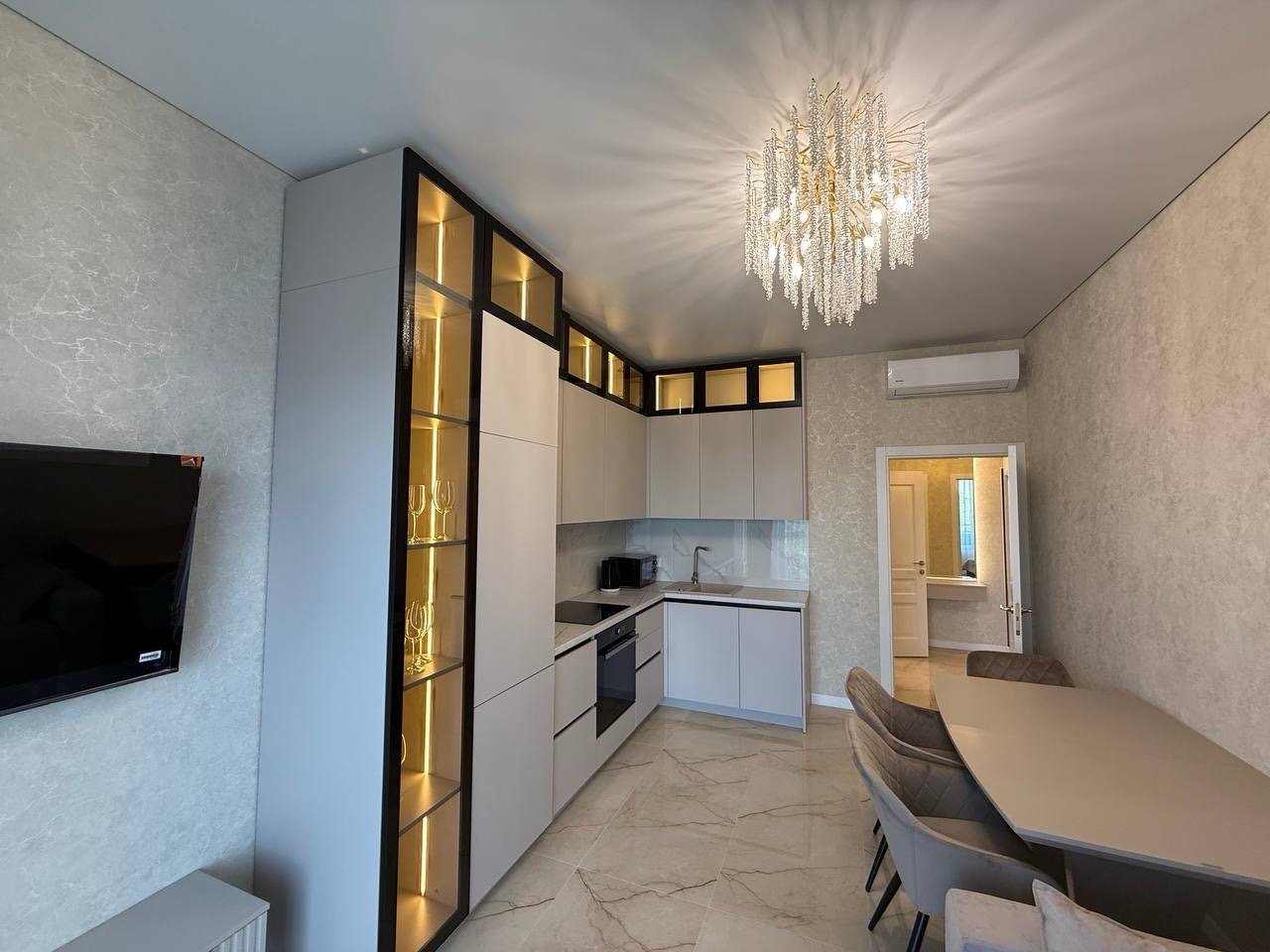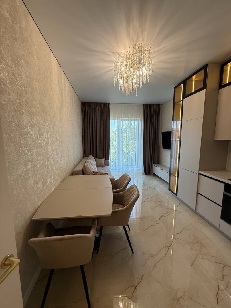 Виконано сучасний якісний ремонт з використанням дорогих та надійних матеріалів. Інтер'єр оформлений у світлих тонах, завдяки чому простір виглядає просторим, світлим та затишним. Квартира повністю мебльована та оснащена необхідною технікою – можна заїхати та жити без додаткових вкладень. Зручне планування, окремі санвузли, є балкон для відпочинку та свіжого морського повітря.