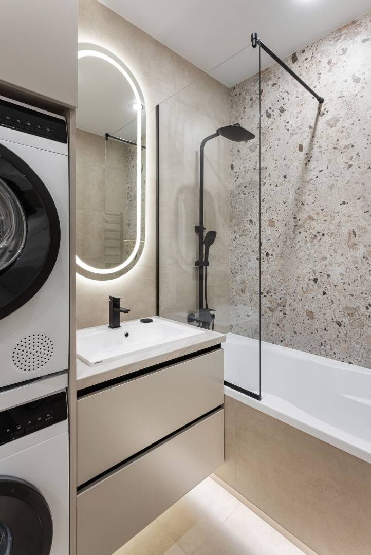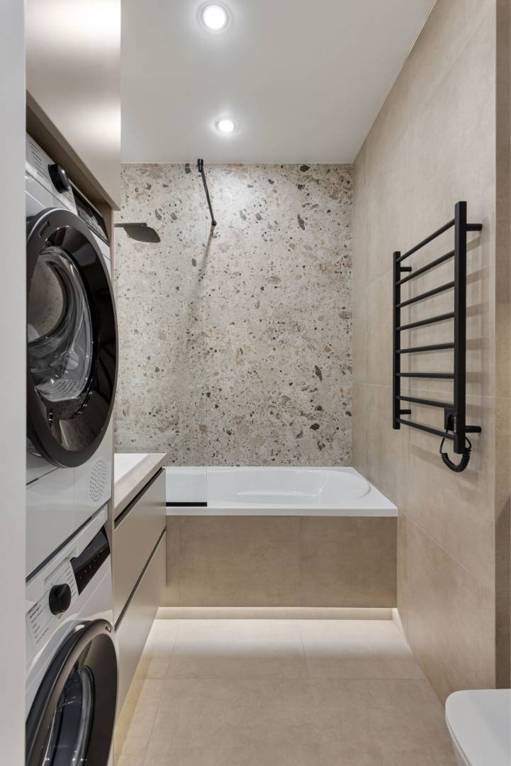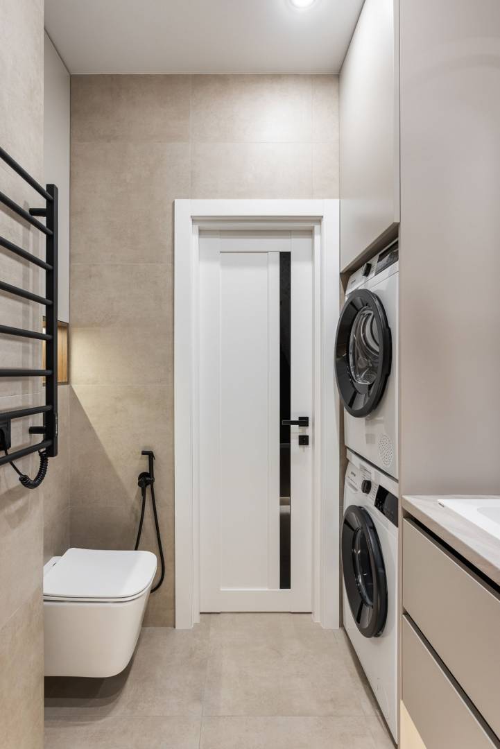 Пропонується до вашої уваги 2 кімнатна квартира в новобудові. Система автоматичного резервного електропостачання квартири призначена для безперебійного живлення приладів при відключенні центральної електромережі. Шумоізоляція стелі. Smart система безпеки. Інверторна кліматична спліт система. Електрична тепла підлога: кухня, коридор, ванна кімната. Кухонна побутова техніка преміум класу: духова шафа, варильна панель, посудомийна машина. Пральня зона Встановлені роздільні пральна та сушильна машини. У кухні, передпокої та санвузлі керамограніт, у житлових кімнатах ламінат. Цифровий відеодомофон із функцією запису. Дизайнерське планування. Можливий продаж під будь-яку програму.